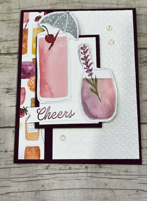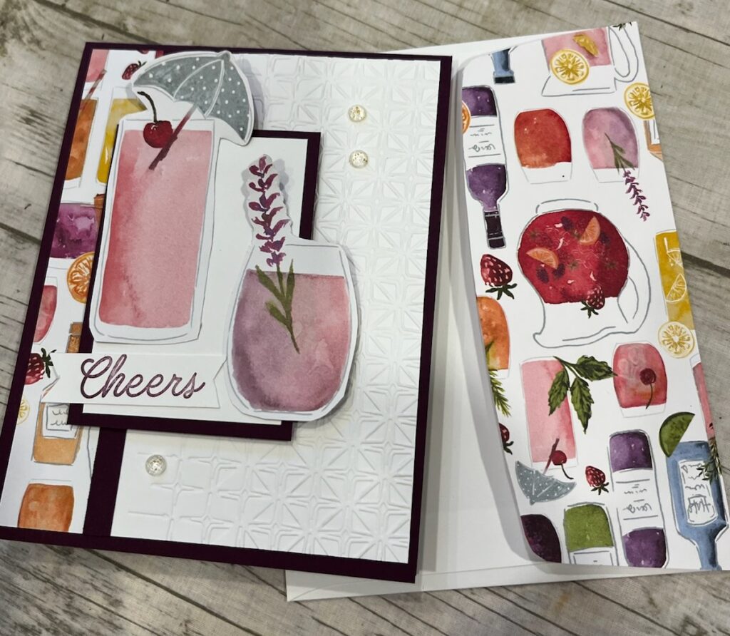 - I added a coordinating strip of the Celebratory Sips DSP to the inside of the card on a Basic White panel for a polished, cohesive look.