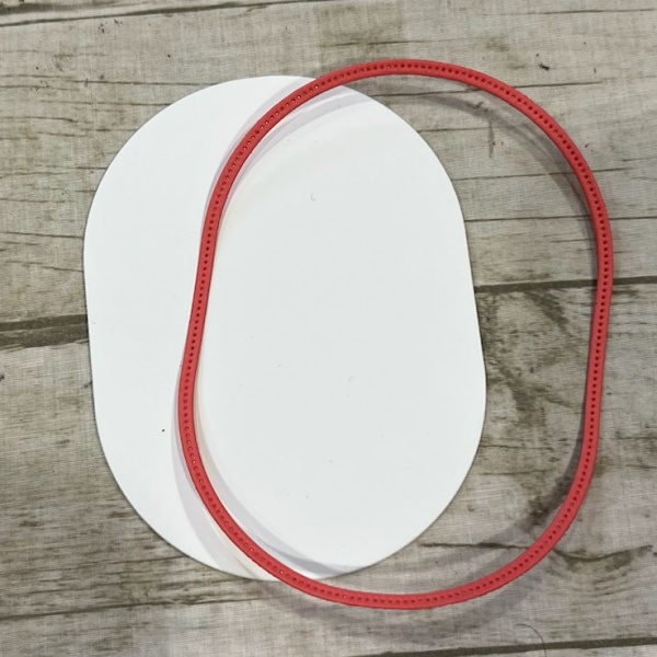 1. Adhere the Pretty In Pink stitched oval to the card center using liquid glue.