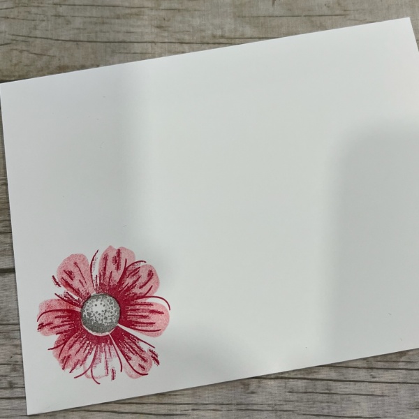 1. Stamp the detailed flower image first using a darker ink (I used Melon Mambo or Strawberry Slush).