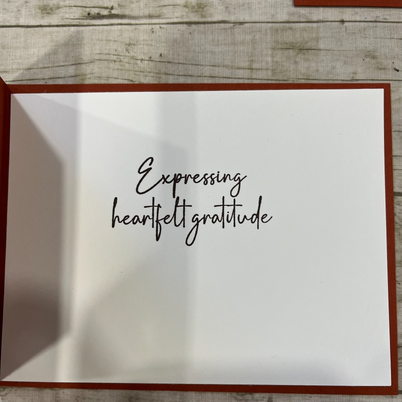 - Stamp the sentiment on the inside layer with Early Espresso and adhere it inside the card.